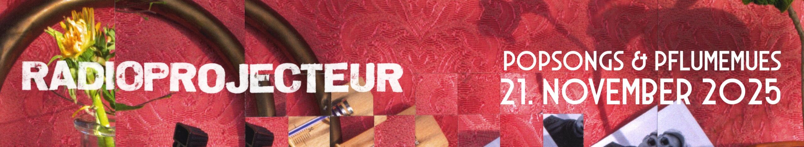 Mit Popsongs & Pflumemues (2025) brechen Radioprojecteur auf in neue musikalische Gefilde. Der Sound ist dichter, treibender und, ja, poppiger. Die Songs reichen in ihrer Vielfältigkeit von aufgekratzten Nachbarschaftsbetrachtungen über den fast schon cineastisch anmutenden Wunsch der Selbstauflösung zu filigranen Balladen, die die Schönheit oder den Schmerz des Zwischenmenschlichen in Worten zu fassen versuchen oder davon handeln, wenn eben diese Worte nicht mehr hinreichen. Neben den energetischen Songs hat es auf «Popsongs & Pflumemues» auch Platz für die stillen Lieder, die den diversen Instrumentierungen Platz zum Atmen geben.